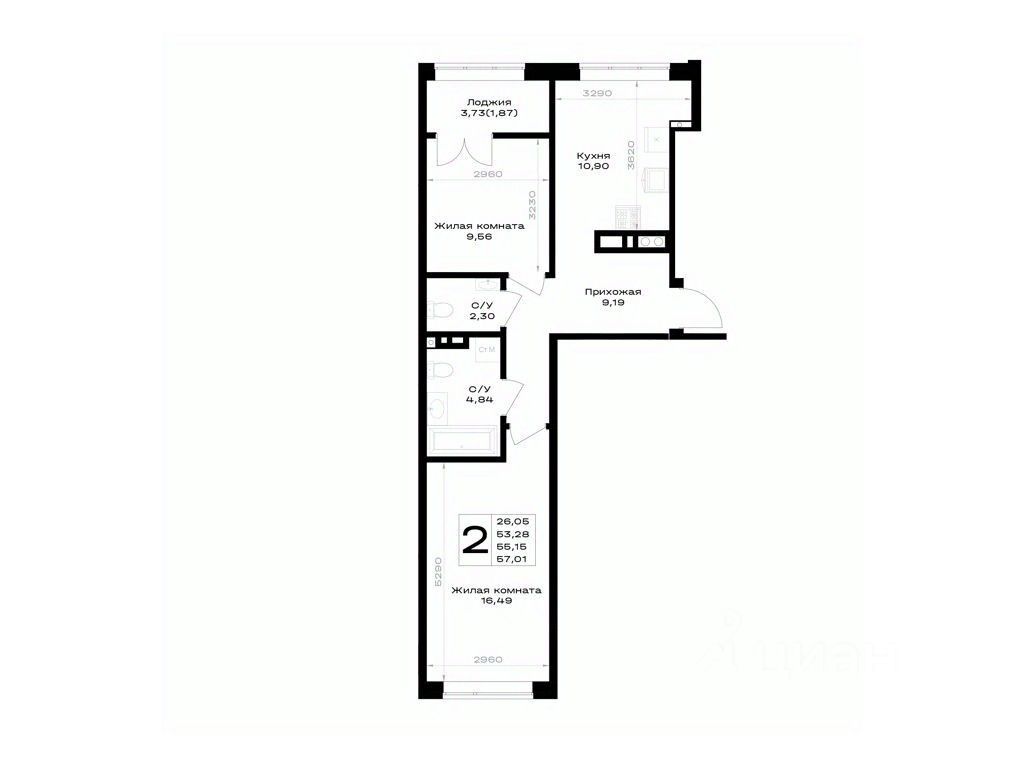 Общая площадь55,15 м²