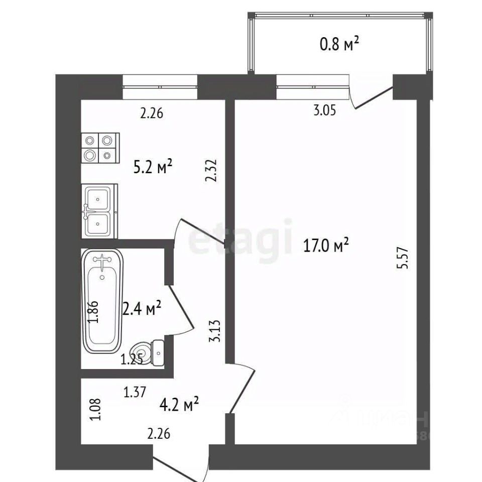 5,2 м²