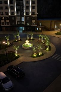 • Панорамные окна и красивые виды во двор на фонтан, из спальни на лес.