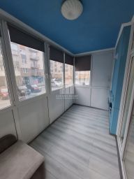 Утепленный балкон добавляет дополнительное пространство для отдыха. Окна выходят на улицу, обеспечивая достаточное количество естественного света.