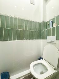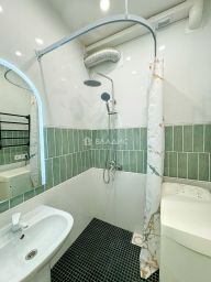 Совмещенный санузел, выполнен в светлых тонах с современной техникой.