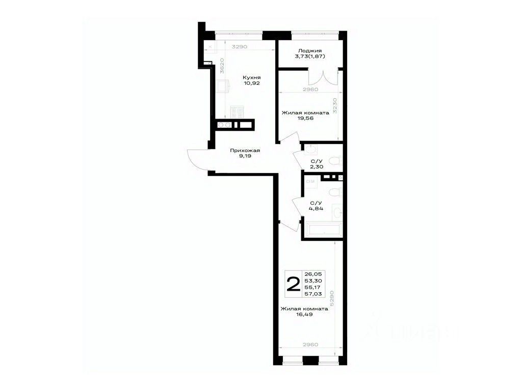Общая площадь55,17 м²