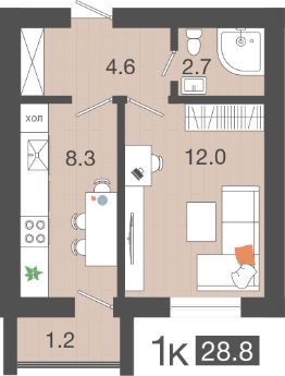 Продаётся 1-комнатная квартира в сданном доме (Лазурная, 29к1 (Дом 1 4 очередь)), срок сдачи: III-кв. 2025, общей площадью 28.8 кв.м., на 3 этаже.