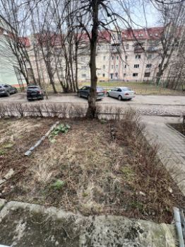 Перед окнами два палисадника, подвал закрепленный за квартирой для хранения вещей.