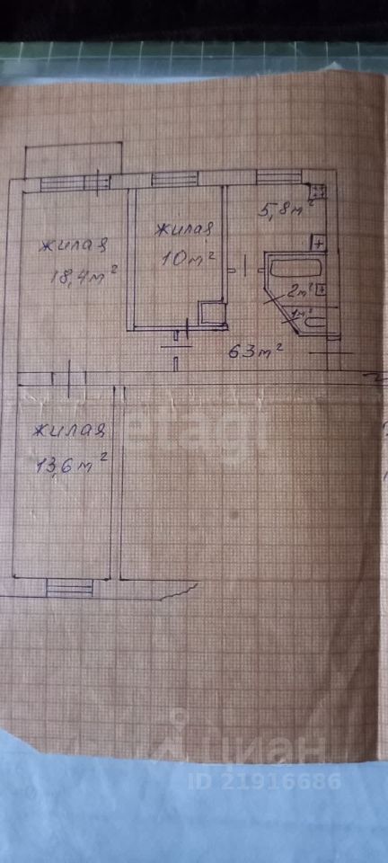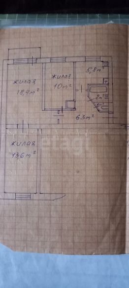 Квартира площадью 57,40 кв.м. Все комнаты изолированы.