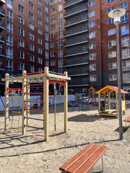 В подъезде два лифта (грузовой и пассажирский), на этаже открытый общий балкон. Во дворе — открытая автостоянка, в доме есть подземный паркинг (места продаются отдельно), детская площадка.