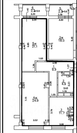 Комнаты: 24,9 м² и 21,1 м², изолированные