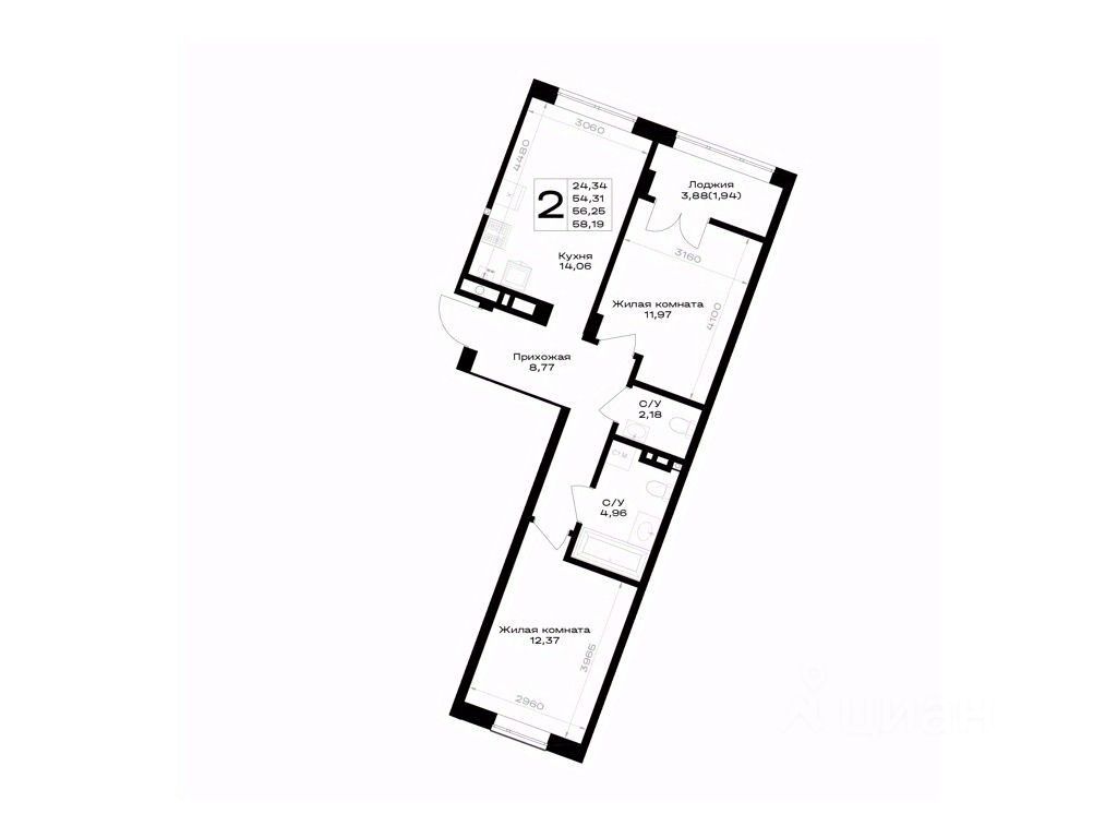 Общая площадь56,25 м²