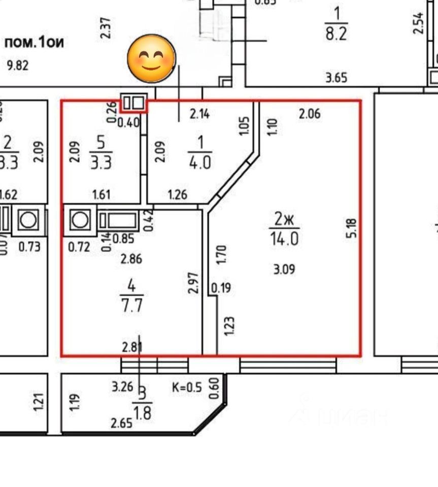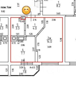 Планировка удачная: прихожая 4 м.кв, комната 14, кухня почти 8 с лоджией 3,6. ВНИМАНИЕ! В объявлении указана площадь квартиры с учётом лоджии, как у застройщика. В выписке из ЕГРН площадь 29,0 м² (без холодного помещения)