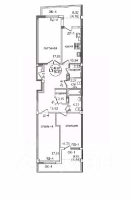 Планировкой предусмотрены две лоджии, два санузла и отдельная кладовая-гардеробная для удобного хранения вещей.