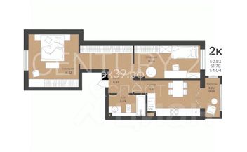 Общая площадь 54,04 м2, совмещенный санузел, комнаты изолированные, светлая, просторная, с лоджией.