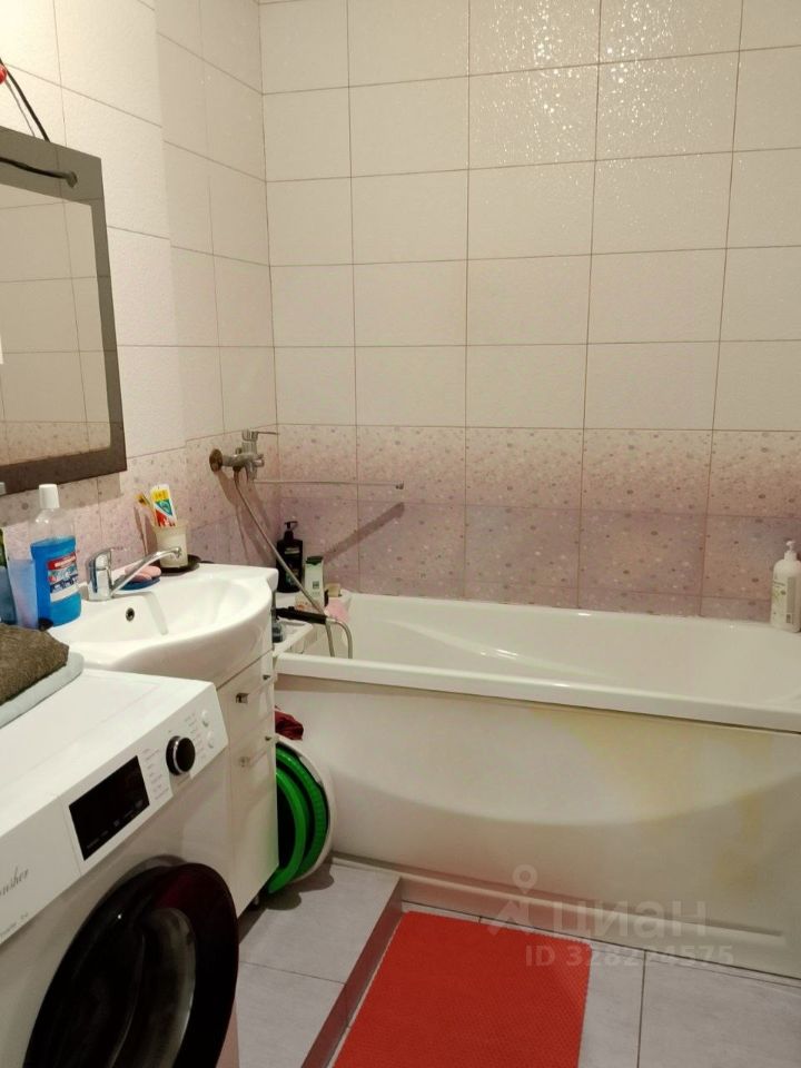 В санузле полностью завершена отделка: выложена напольная и настенная плитка, установлен полотенцесушитель и бойлер.