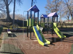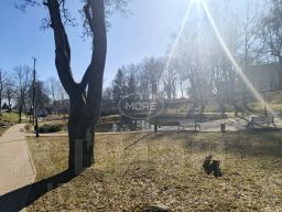 Рядом с домом: парк с шикарной детской площадкой и прудом.