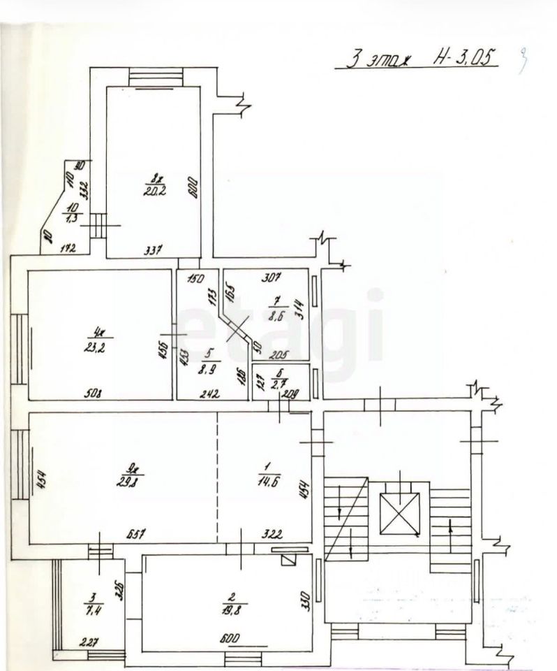 Общая площадь квартиры по выписке ЕГРН 135,2 кв.м., с учетом балкона 136,5 кв.м. Три комнаты (23,2 кв.м., 29.8 кв.м. и 20.2 кв.м.), кухня 19.8 кв.м. со вспомогательным помещением 7,4 кв.м., два санузла.