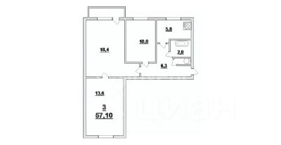 Общая площадь-57,1м². Площадь кухни-5,8м². Жилая площадь-42м².
