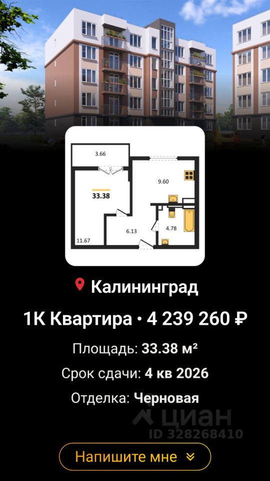 Продается уютная однокомнатная квартира в тихом районе г.Гурьевск ул.Тельмана (карта онлайн не даёт точно выстроить точный адрес ).Новостройка Общая площадь квартиры составляет 33.38кв. м, из которых жилая площадь — 11.67 кв. м и кухня — 9.60