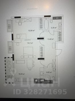 Общая площадь квартиры: 68,3 кв. м.