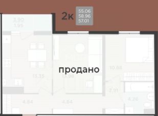 Общая площадь — 59 м²