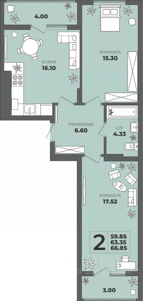 Общая площадь63,35 м²