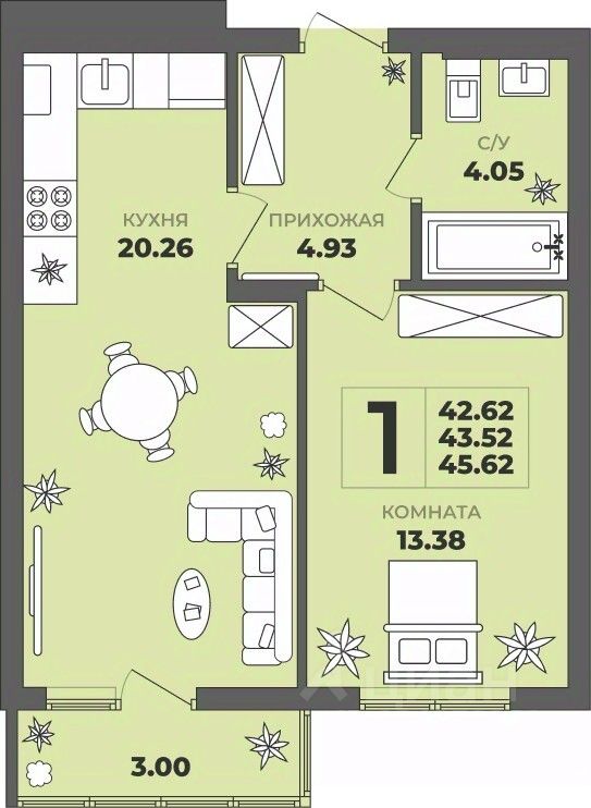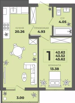 Общая площадь43,52 м²