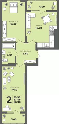 Общая площадь63,48 м²