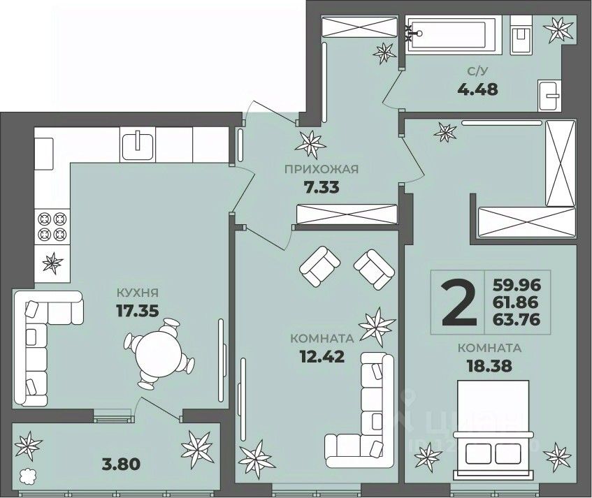 Общая площадь61,86 м²