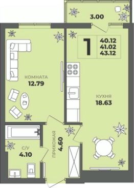 Общая площадь41,02 м²