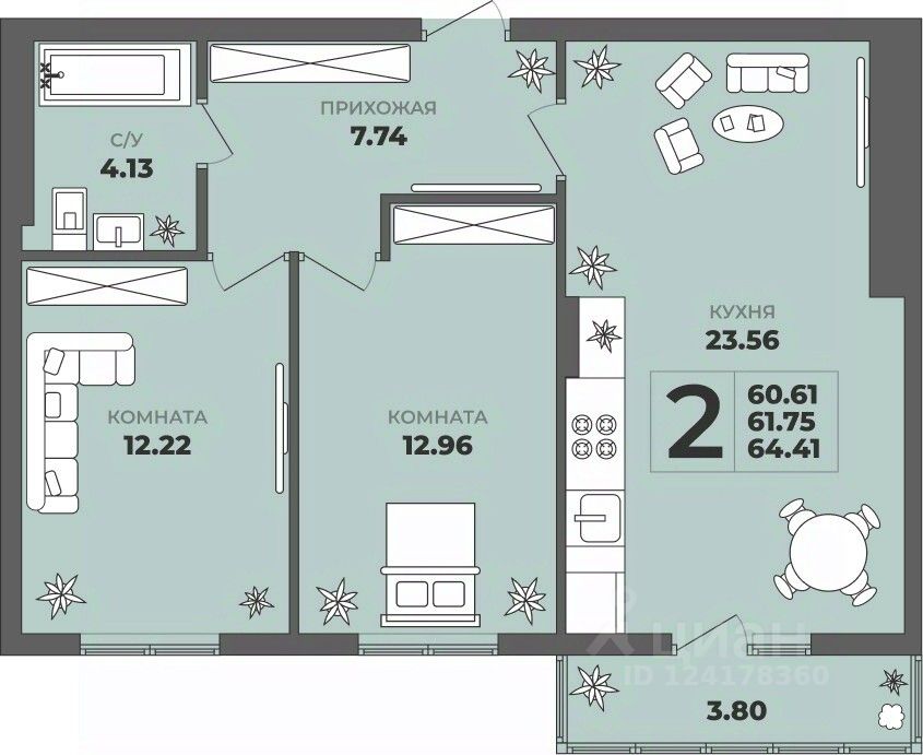 Общая площадь61,75 м²