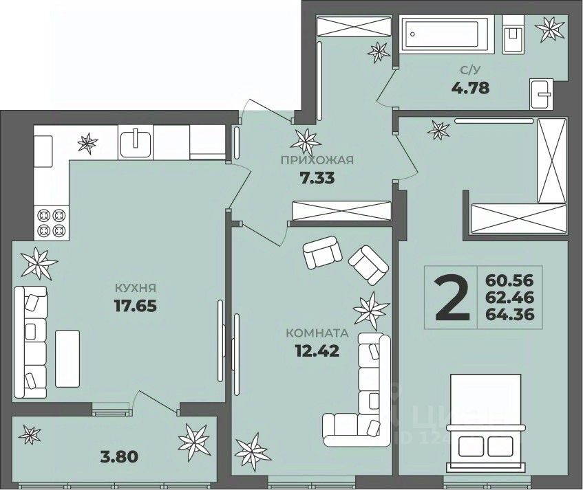 Общая площадь62,46 м²