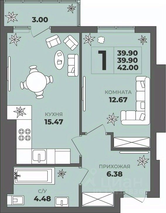 Общая площадь39,9 м²
