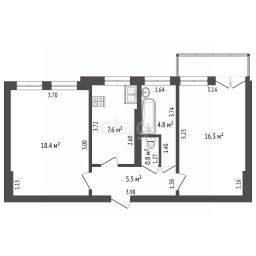 • Просторные комнаты 16,3 м² (с выходом на уютный балкон) и 18,4 м².