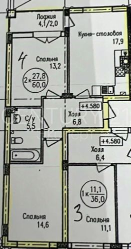 • Лоджия: 4,1 м2