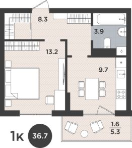 Квартира 143. Жилой комплекс Левада это место, где комфорт встречает функциональность, а стиль несет в себе простоту и уют.