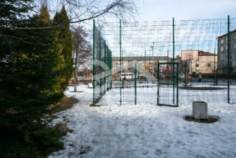 Парковка открытая; просторный двор, спортивная и детская игровая площадки