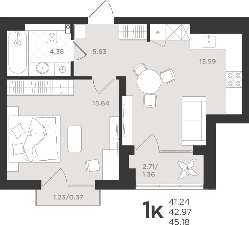 Продаётся 1-комнатная квартира в строящемся доме (Дом 2), срок сдачи: IV-кв. 2026, общей площадью 42.97 кв.м., на 4 этаже. Многоквартирный жилой дом комфорт-класса "Шелест" расположен в Светлогорске на улице Песочная в окружении высоких сосен является настоящим уголком отдыха от городской суеты и шума.