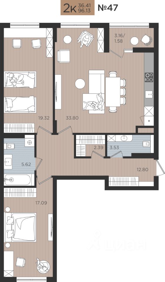 Продаётся 2-комнатная квартира в строящемся доме (Дом 3), срок сдачи: III-кв. 2026, общей площадью 96.13 кв.м., на 4 этаже. Новые жилые дома от Специализированного застройщика "Самолет Калининград Плюс" расположены в г. Калининград на ул. Советский проспект.