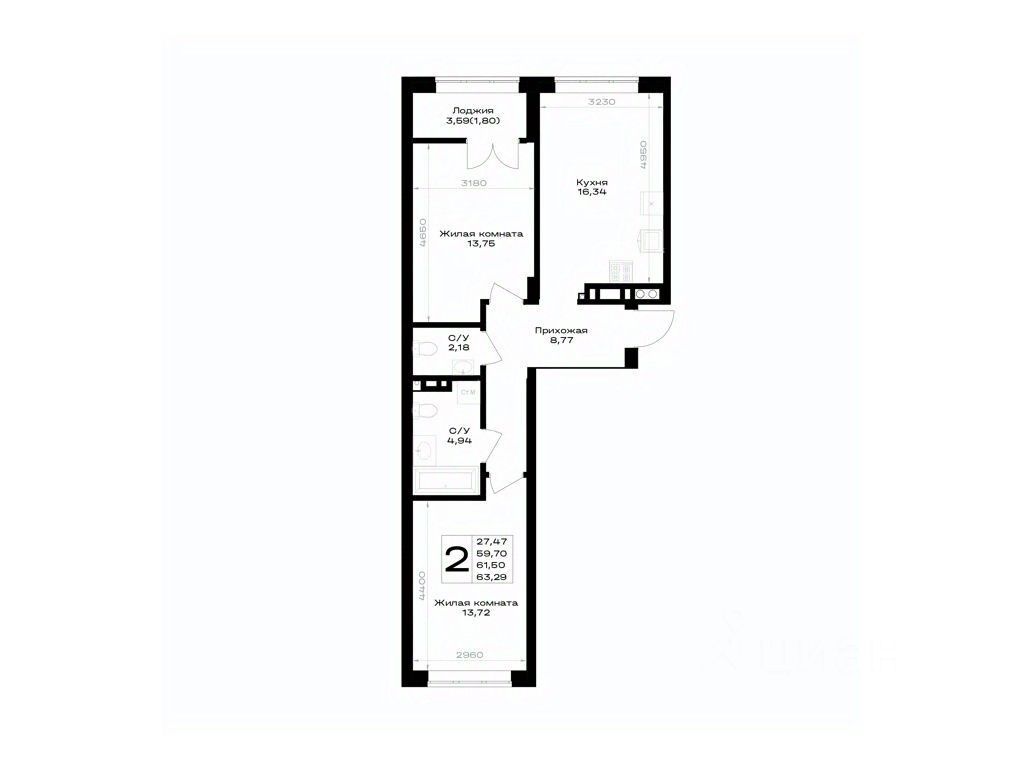 Общая площадь61,5 м²