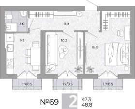 Общая площадь48,8 м²
