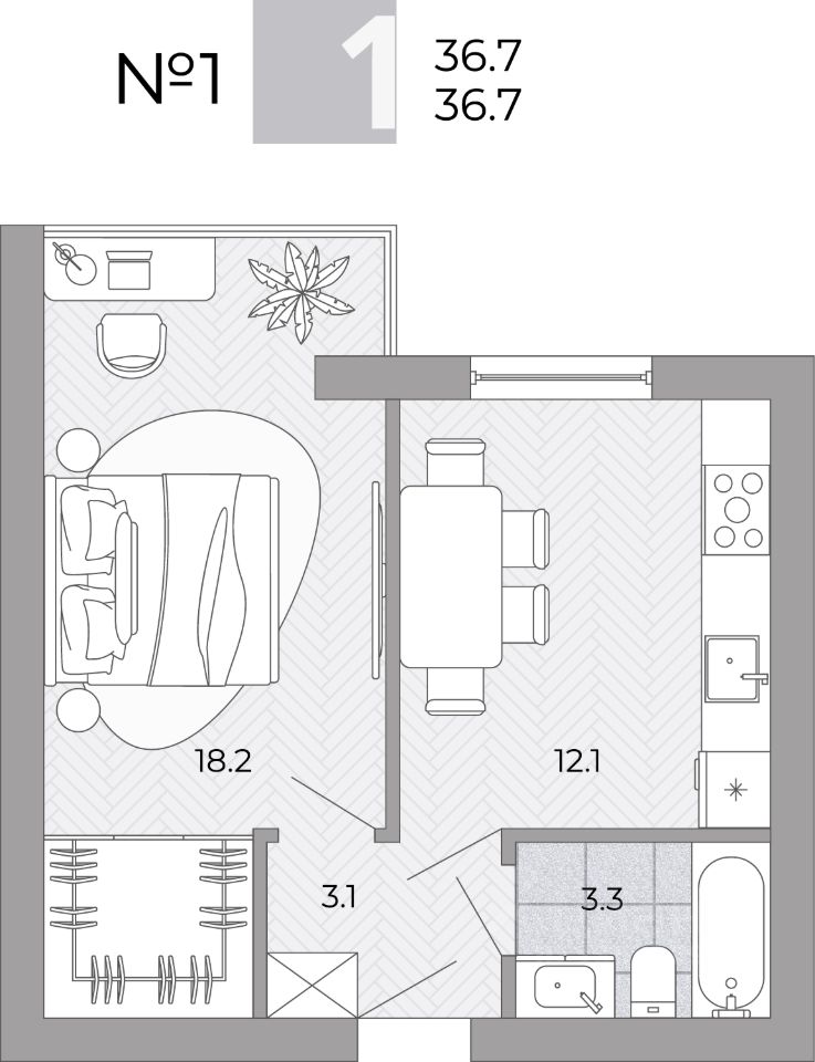 Общая площадь36,7 м²
