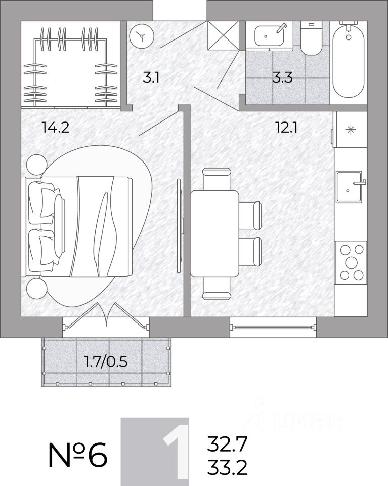 Общая площадь33,2 м²