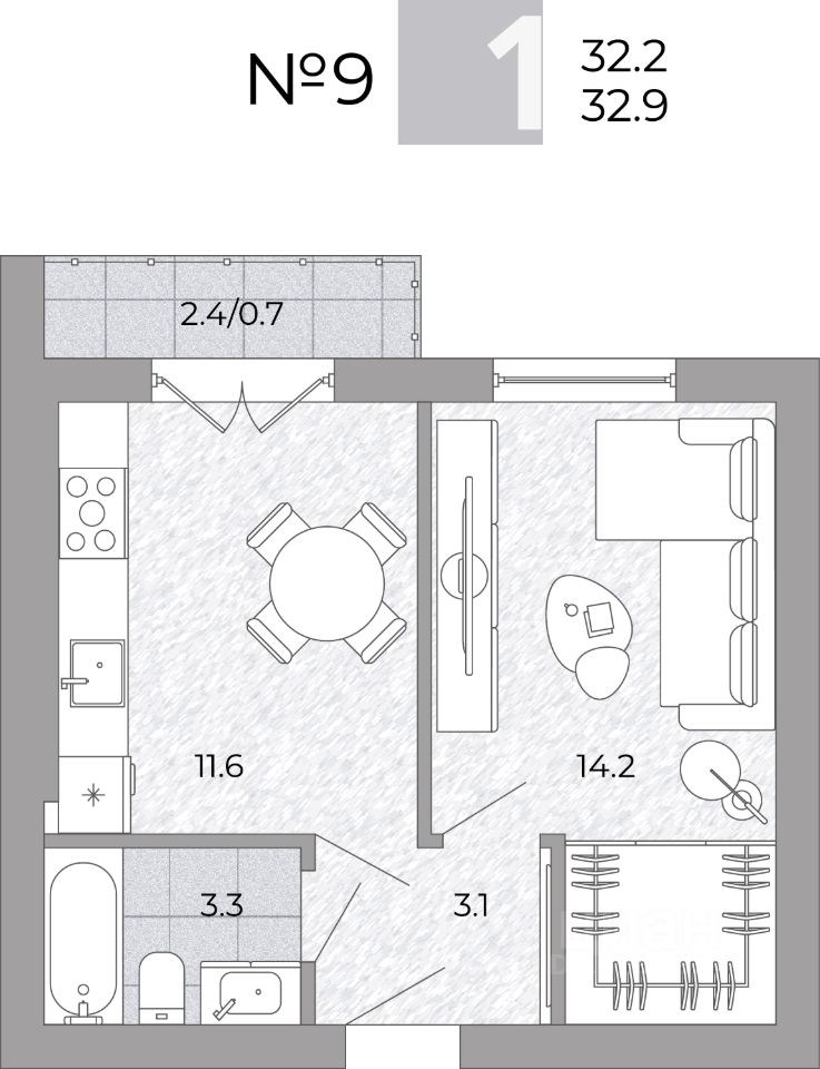 Общая площадь32,9 м²