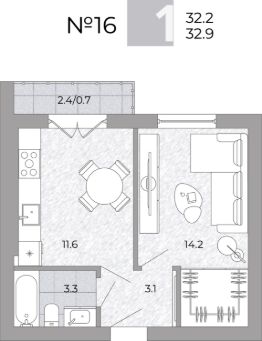 Жилая площадь14,2 м²