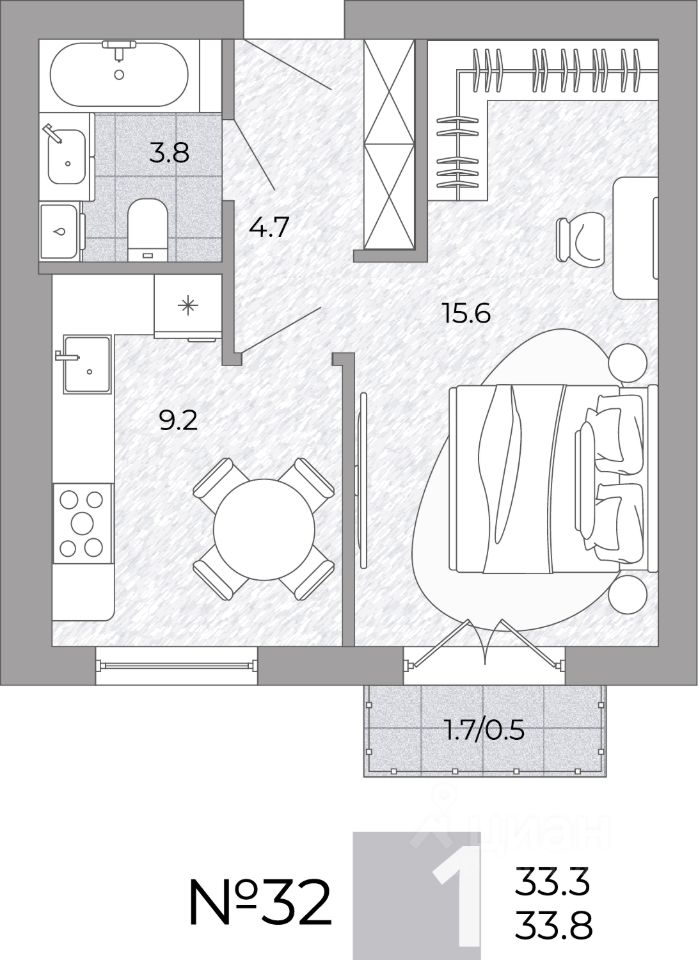 Общая площадь33,8 м²
