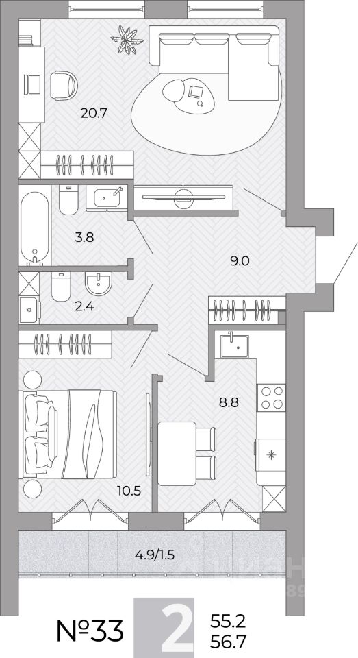 Общая площадь56,7 м²