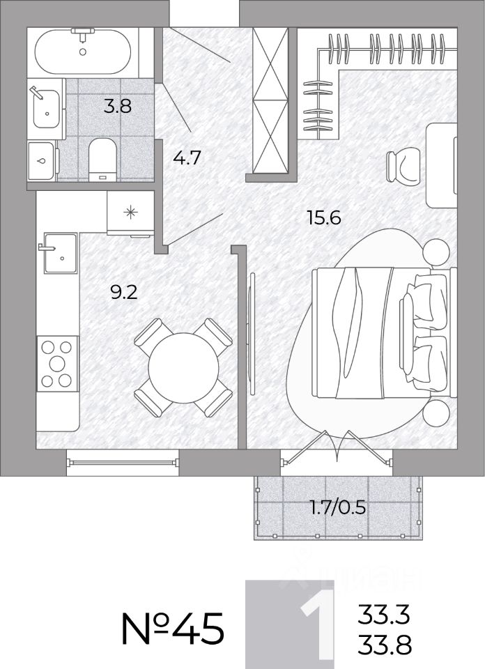 Общая площадь33,8 м²