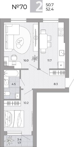Общая площадь52,4 м²