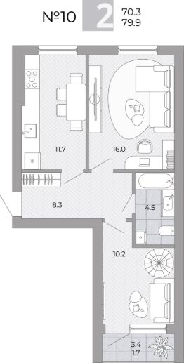 Площадь кухни11,7 м²