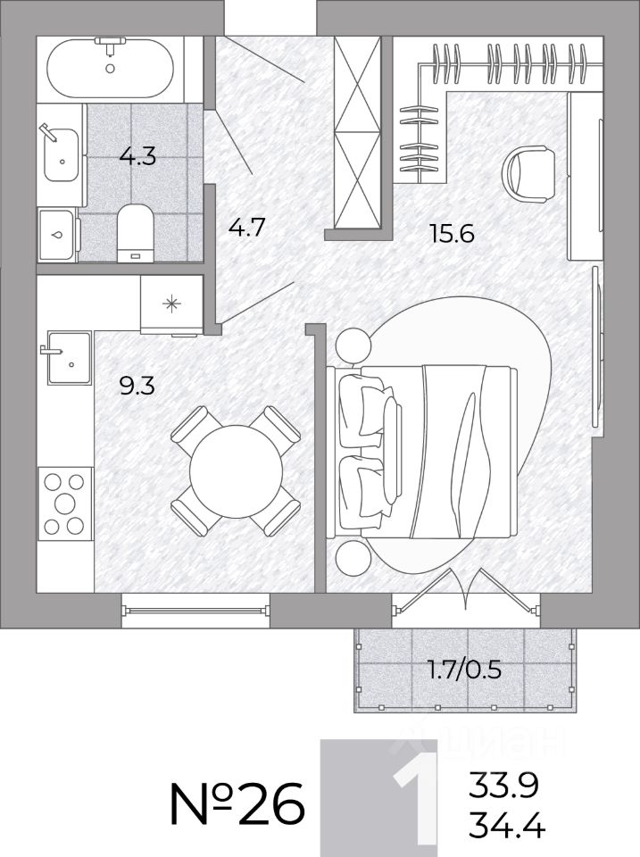 Общая площадь34,4 м²