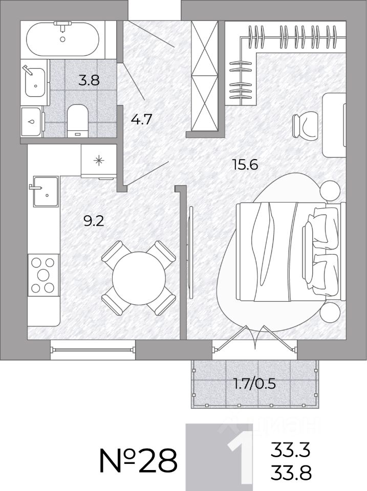 Общая площадь33,8 м²