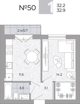Общая площадь32,9 м²